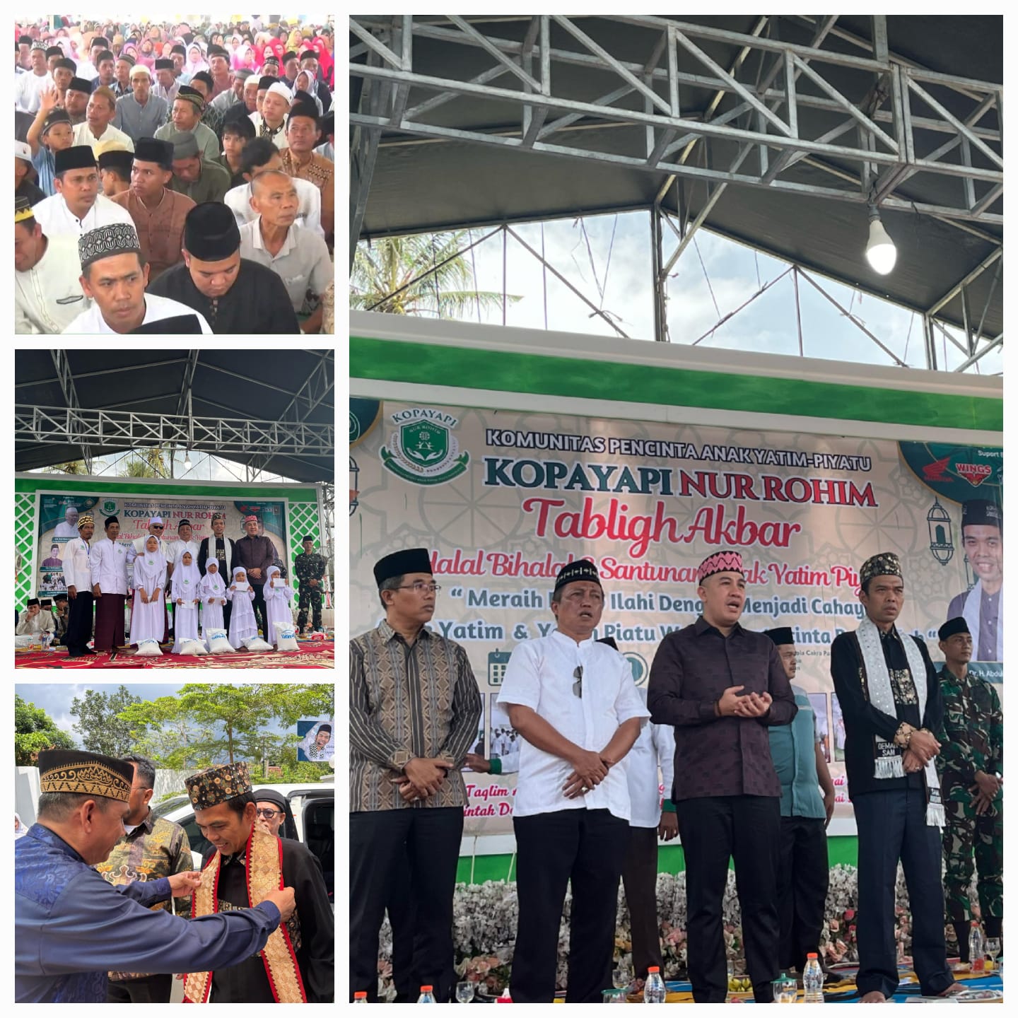 Pesawaran, 27 April 2025 – Ratusan masyarakat memadati Lapangan Sepak Bola Cakra Pamula, Desa Sungai Langka, Kecamatan Gedong Tataan, Kabupaten Pesawaran, untuk menghadiri acara Santunan Anak Yatim dan Tabligh Akbar yang diselenggarakan Yayasan Pecinta Anak Yatim Piatu (Kopayapi) Nur Rohim, Minggu (27/4/2025). Kegiatan ini semakin meriah dengan kehadiran pendakwah nasional, Ustaz Abdul Somad (UAS).